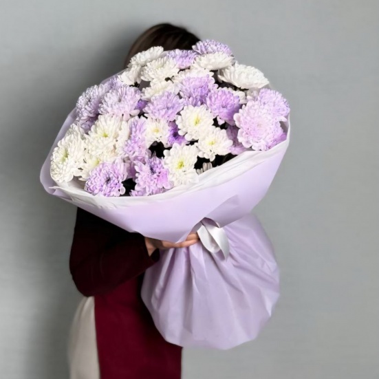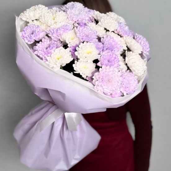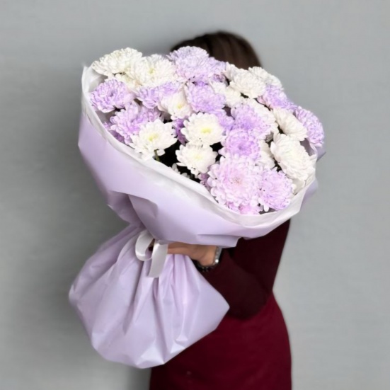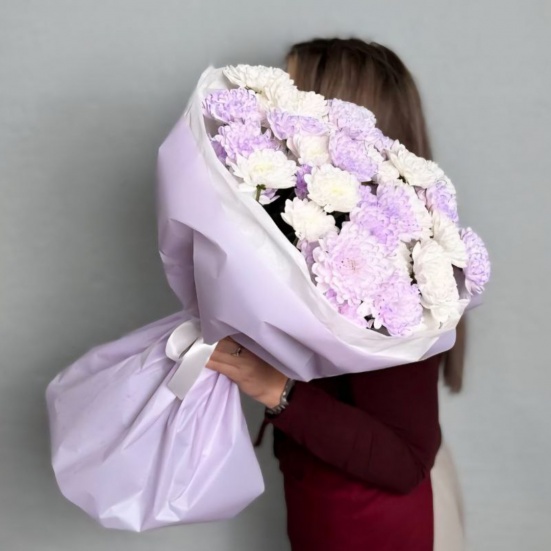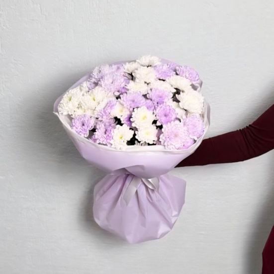 Букет из 9 фиолетовых и белых хризантем в Угличе