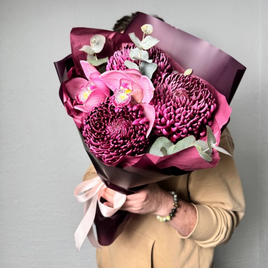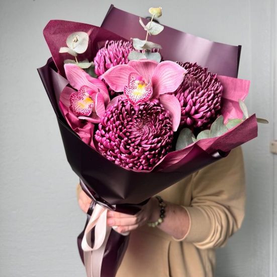 Букет из хризантем Бигуди и Орхидей в Угличе